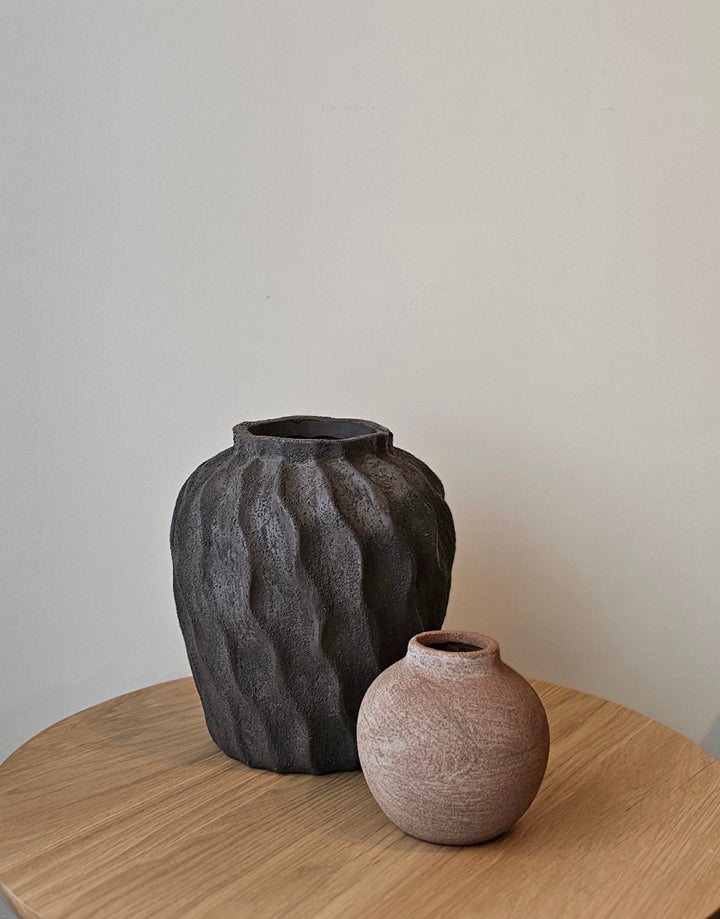 Clean and effortless in form with soulful, tactile detail, the Eris Vase brings a quiet, grounded presence to your décor. Crafted in a soft taupe with a beautifully textured ceramic finish, this piece feels at once organic and refined. Perfect for layering into your everyday vignettes.