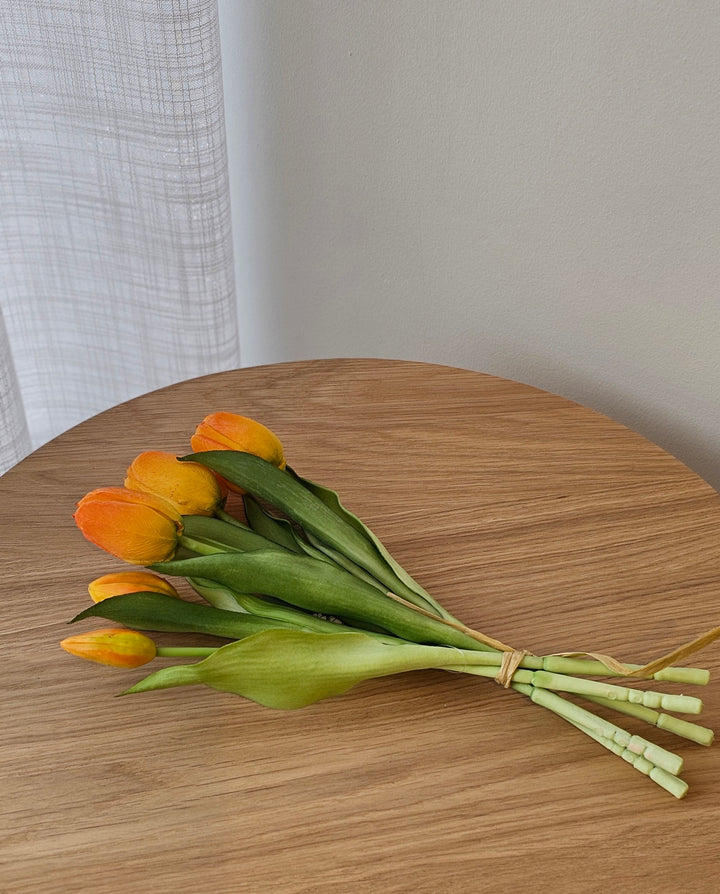 This beautifully crafted orange tulip bunch brings a fresh, effortless softness to your space without the maintenance of real blooms. Designed with natural movement and delicate detailing, these stems feel refined and quietly elegant.